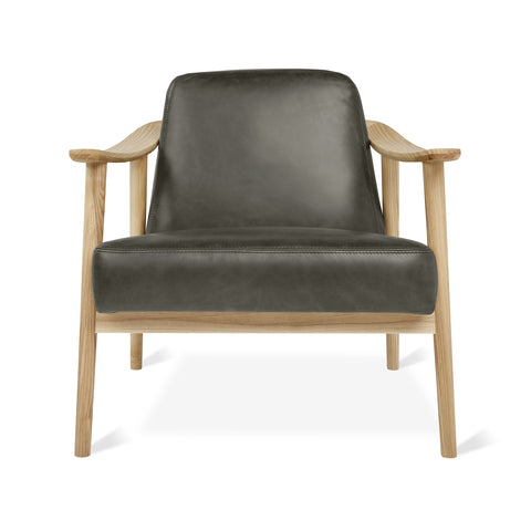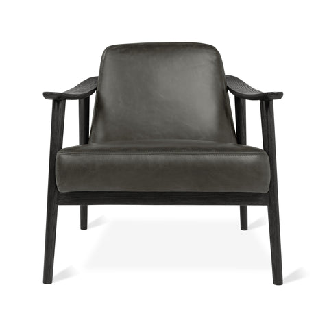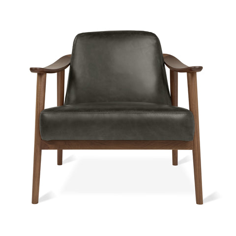 • Solid wood frame featuring custom bent armrests and mortise and tenon joints is crafted from walnut or ash.