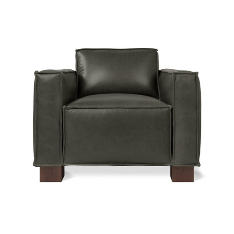 The Cabot Chair features a tight seat and back, with architectural, wood block feet and simple French seams, offering a comfortable, modern take on a traditional, masculine design. Available in two classic leathers chosen for their unique grain characteristics that will age beautifully and develop a rich, natural patina over time. Also available as a sofa. Our leather hides are carefully selected for their raw, natural surface characteristics which make each piece unique.