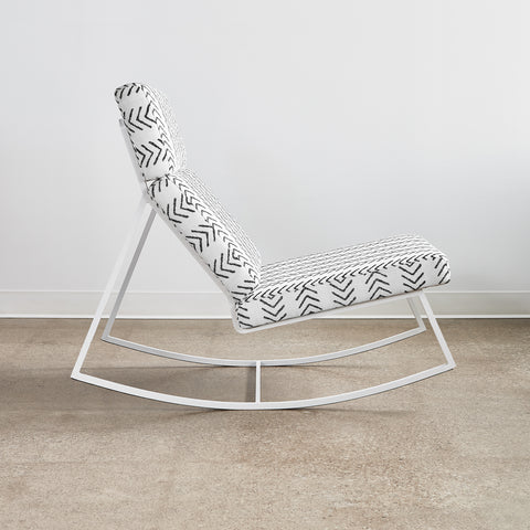 The Gus* version of the perfect modern rocking chair; featuring a powder coated frame with architecturally-styled cushions inspired by airport lounge seating and 70's car interiors. Constructed with 100% FSC®-Certified Wood in support of responsible forest management.